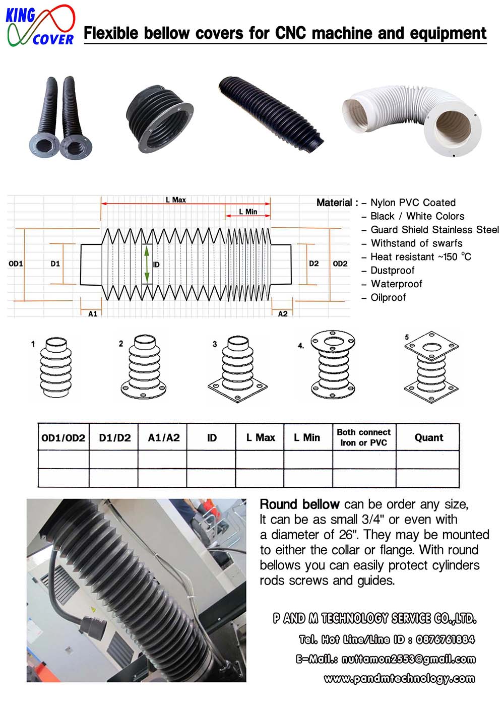 เหมาะสำหรับป้องกันฝุ่น กันน้ำ กันน้ำมัน กันละอองสี ผงแป้ง เส้นใยผ้า ทนสารเคมี ที่จะเข้าไปในชิ้นส่วนเครื่องจักรเพื่มความสวยงาม และความปลอกภัยกับผู้ใช้งานเครื่องจักร นิยมใช้กับ ball screw ยางหุ้มเพลา บอลสกรู ,rial linear รางลิเนียร์ , x-lift table เอกซ์ลิฟท์ เทเบิล, linear shaft เพลาสไลท์ , หุ้มแกนไฮดรอลิค เพลากระบอสูบ , ท่อย่น แกนเพลา ระบบลม นิวเมติกส์ หรือประยุกต์เพื่อยืดอายุการใช้ของอุปกรณ์ เนื่องจากปัญหาฝุ่นผง ติดกับเพลาที่มีน้ำมันช่วยหล่อลืนอยู่ จึงทำให้แกนเพลา สะสมฝุ่นได้ง่ายอาจเป็นก้อนแข็ง ส่งผลกับ ซีลยาง เกิดการรั่ว ของน้ำมัน หรือลม รวมถึงแกนเพลาได้รับความเสียหาย เป็นรอย คดงอได้ ซื่งค่าใช้จ่ายในการซ่อมจะสูงกว่าการ maimtenance ปกติ มีสี ดำ ขาว เหลือง และ เหลืองสลับดำ จำหน่าย